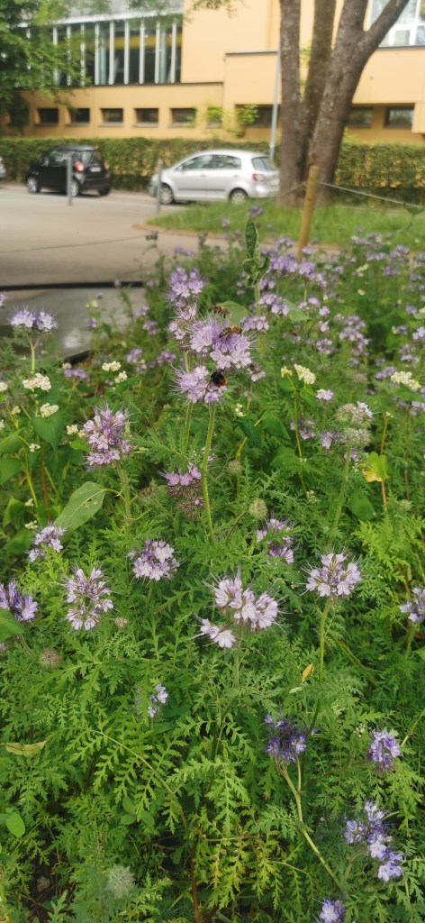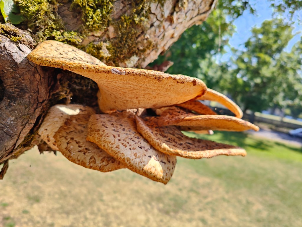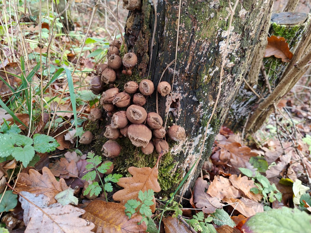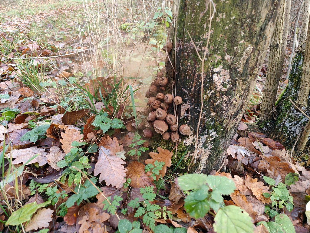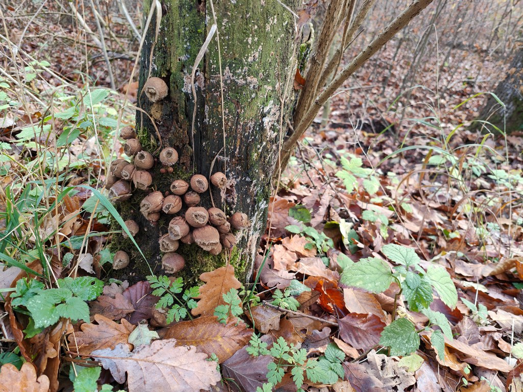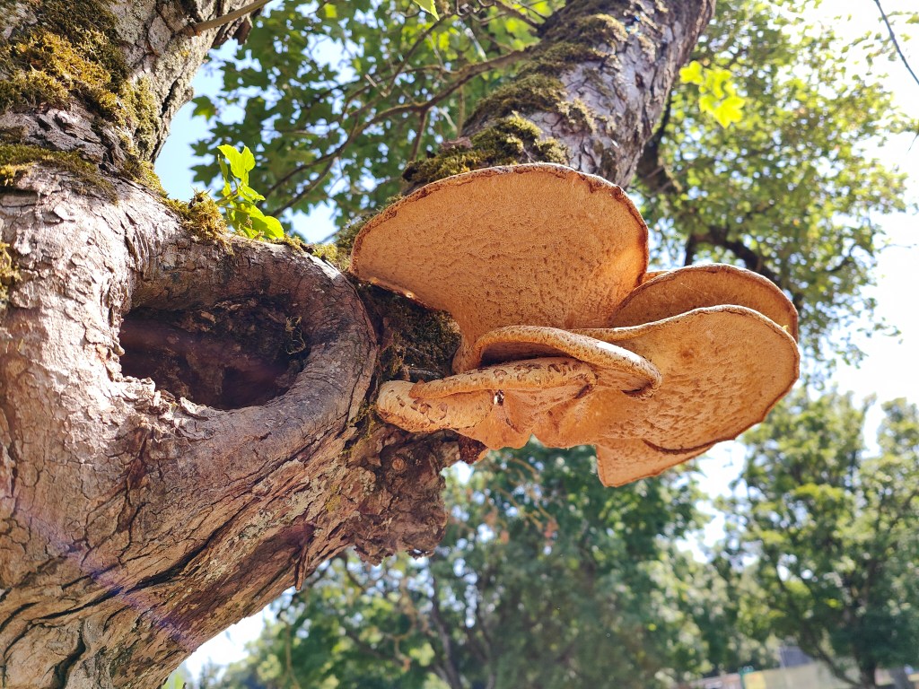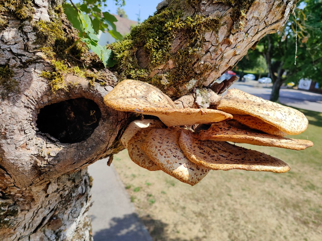 Die Graue Färbung stammt von sogenannter Biberschutzfarbe, diese bildet eine mechanische Schutzschicht vor Biberfrass. In diesem Fall war die unannhemlichkeit dem Biber wohl egal.