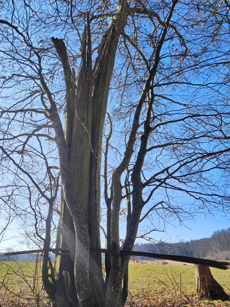 Nach langer Zeit ohne Biberschäden am Lindli hat sich ein wohl hungriger Biber an dieser Grossblatt-Pappel (Populus lasiocarpa) gütlich getan.